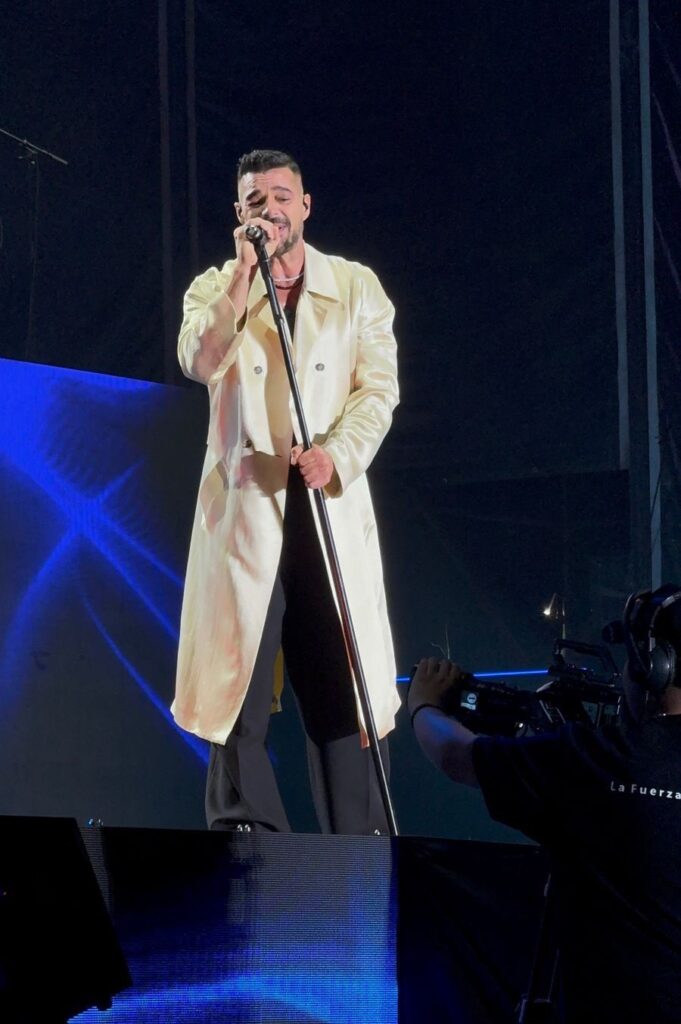 Durante la velada, el intérprete combinó coreografías enérgicas con momentos de cercanía con el público. Canciones como “María” y “Vente pa’ acá” hicieron cantar y bailar a los asistentes, mientras que “Tal vez” generó uno de los momentos más emotivos del concierto, con miles de voces acompañando al artista, quien respondió con gestos de cariño hacia sus fans.