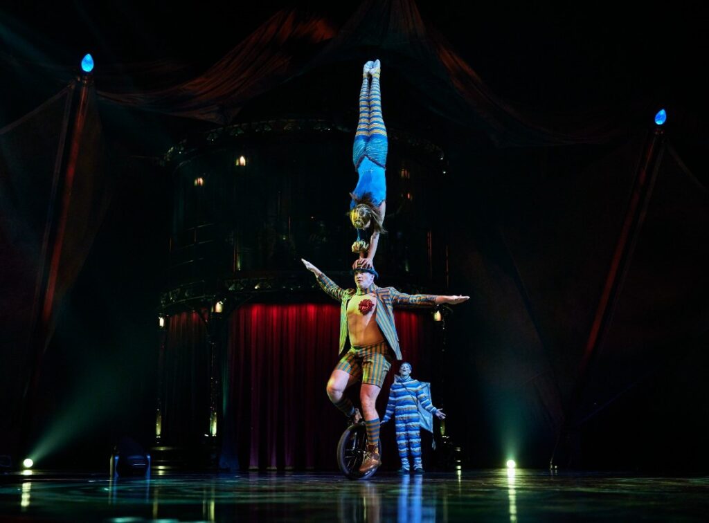 Uno de los momentos más emotivos ocurrió cuando una acróbata emergió de un capullo de telas, simbolizando el despertar y nacimiento de una criatura nocturna, en medio de una iluminación azul que aportó un aire de misterio y magia. La música en vivo, que incorporó ritmos de samba y percusiones latinas, acompañó cada acto, aportando variedad emocional que oscilaba entre la festividad y la reflexión.