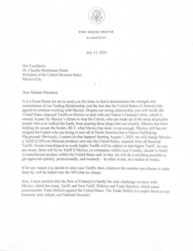 Con esta maniobra, Trump suma ya amenazas o sanciones arancelarias contra más de 50 países, desafiando acuerdos históricos y generando incertidumbre sobre el futuro del comercio internacional.