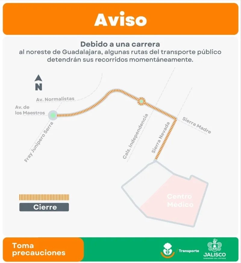 El próximo domingo 28 de septiembre, la Secretaría de Transporte de Jalisco anunció ajustes en el servicio de camiones de la Zona Metropolitana de Guadalajara desde las 6:30 horas debido a dos carreras deportivas.