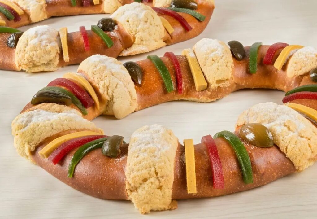 La rosca, un pan dulce de forma circular adornado con frutas cristalizadas, va más allá de ser un simple postre. Su diseño encierra un profundo significado: la forma redonda representa el amor infinito de Dios; las frutas evocan las joyas de las coronas de los Reyes Magos; y la pequeña figura del niño Jesús escondida en su interior recuerda el pasaje bíblico en el que María y José lo protegieron del rey Herodes.